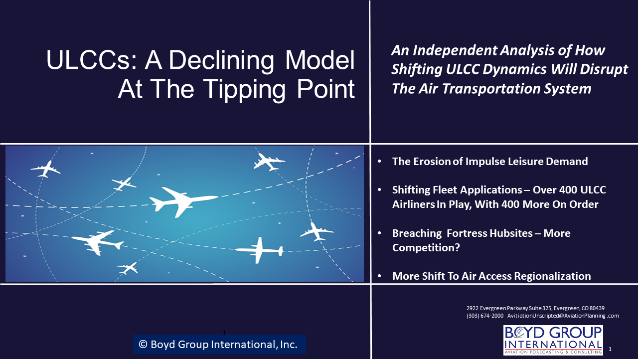 The ULCC model has run into what might be the end of the line for expansion of the traditional impulse demand model. Florida and 'Vegas may be slowing, and there are other revenue streams that some ULCCs are looking at. None are slam-dunks, but are instead rolls of the dice. Click Here