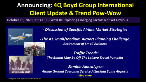 We’ll deal with this aspect in the coming weeks. A lot of the consultant ASD jive being fed to small airports is skirting closer and closer to edge of professional ethics. Or beyond, by implying there is potential for new service operated with airplanes that will no longer exist.