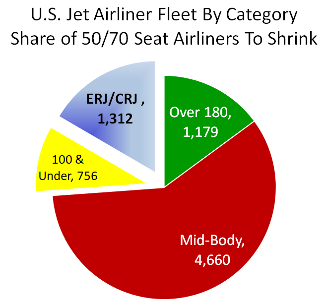 Along with this, the capacity floor at major carrier systems will gravitate to 76-seats and above. Plan on seeing fleets of 50-70 seat jets pulled out in the next 24 months.