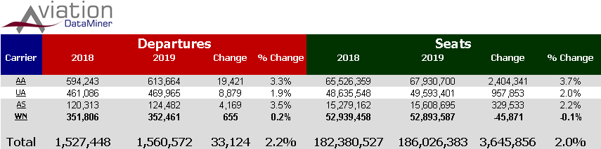 Southwest is the most severely affected, in that, unlike American, United and Alaska, it has only 737s in its fleet. AA is taking delivery of A-321s and some used A-319s. United has a fleet of used 737-700s already contracted, and also some used A-319s. Both are taking mainline-cabin Embraer-175s and leasing them to surrogate “regional” partners. Furthermore, both AA and UA have substantial route and revenue streams generated by international and widebody flying.