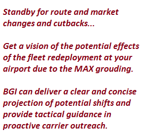 At any airport that has service from one or more of the MAX-affected carriers, it would be prudent to get some visioning now on what fleet redeployment may represent. The objective is to explore how to proactively liaise with the carrier(s) to shortstop any wayward red pencil activity in the route planning department.