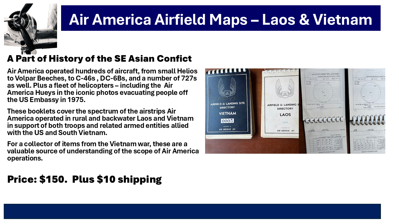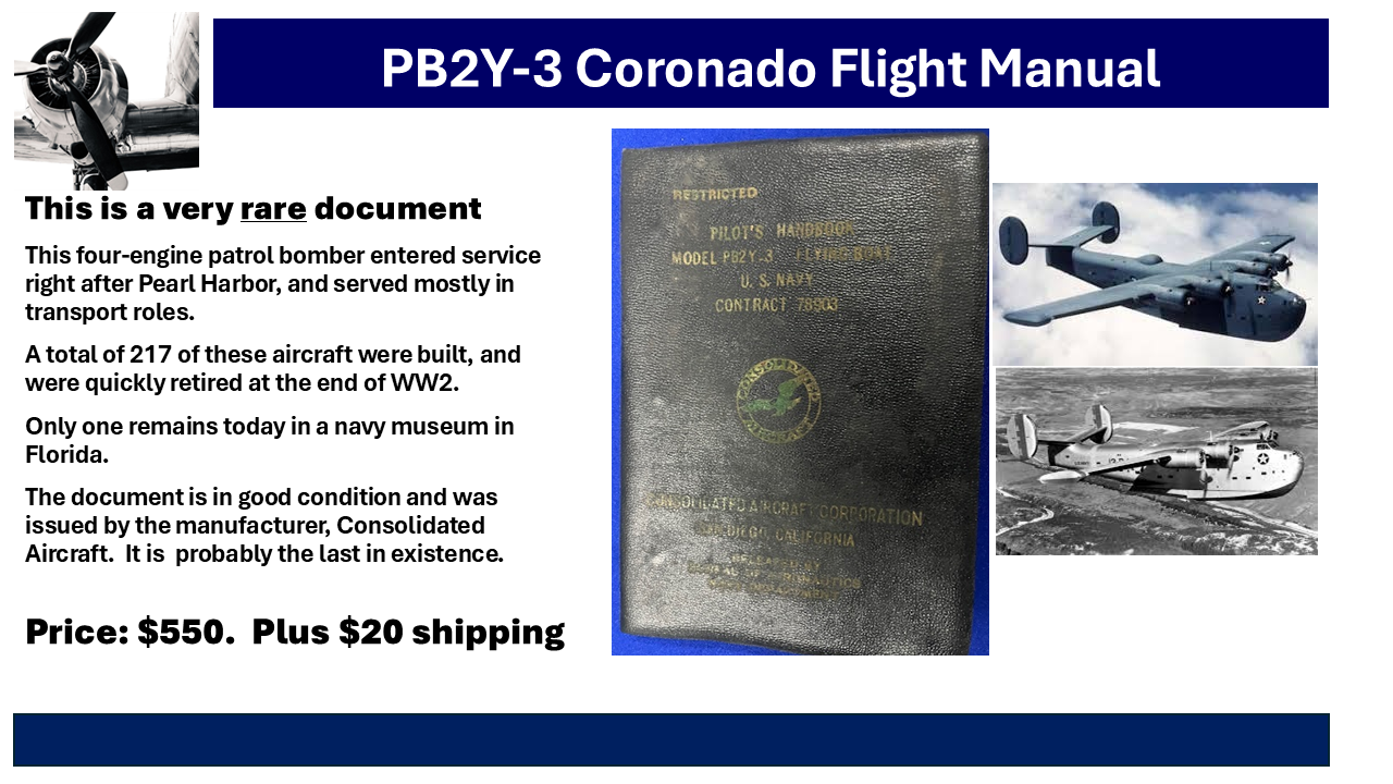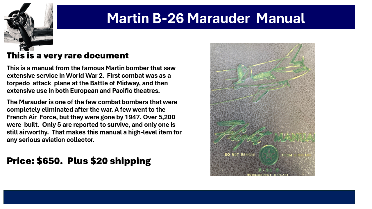 In particular, we have very rare operating manuals from WW2 aircraft, as well as a number of manuals from, well, semi-military aircraft from the Vietnam era.