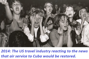 The raw enthusiasm for air travel demand between the USA and Cuba swept the travel industry like 1960s teenagers anticipating the arrival of the Beatles. We heard all about the “pent up demand” for Cuba travel (?) … and the Obama administration was fixin’ to open those floodgates. Hundreds of thousands of new passengers would be crowding through airline hubsites, hankering to connect get to Havana, Matanzas, Santiago and other places.
