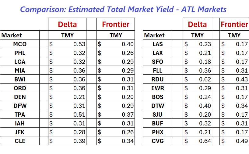 Frontier is betting on mega capacity fleet iron. Of the nearly 200 airliners on order, approximately 125 are high-density 250-seat A321 variants. It’s not that this limits where they can fly so much as it dictates the markets where they must attempt to fly. These are routes with current heavy traffic demand – which in many markets is already served well by network airlines or are markets where low fares can generate huge chunks of new periodic passengers.