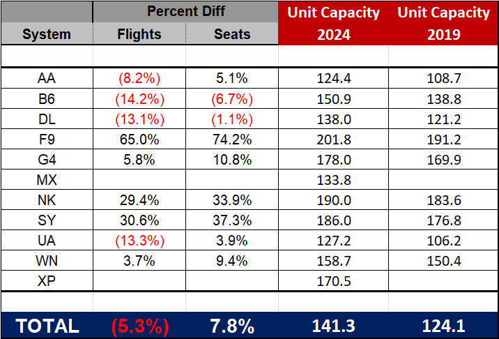 According to our friends at Cirium, traditional mainline carriers are planning on a 5% increase over last year. ULCCs as a group are at @7.8%, but it’s all over the chart depending on airline.