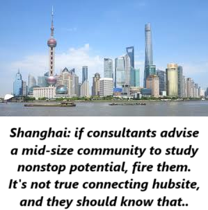 The folks pushing this stuff ignore the basic foundations of air service – which is time and convenience, not local flights. They have no concept about consumer value. They are misleading the public into believing that “air service” is just about the local airport, and not about time-efficient communication and consumer value.