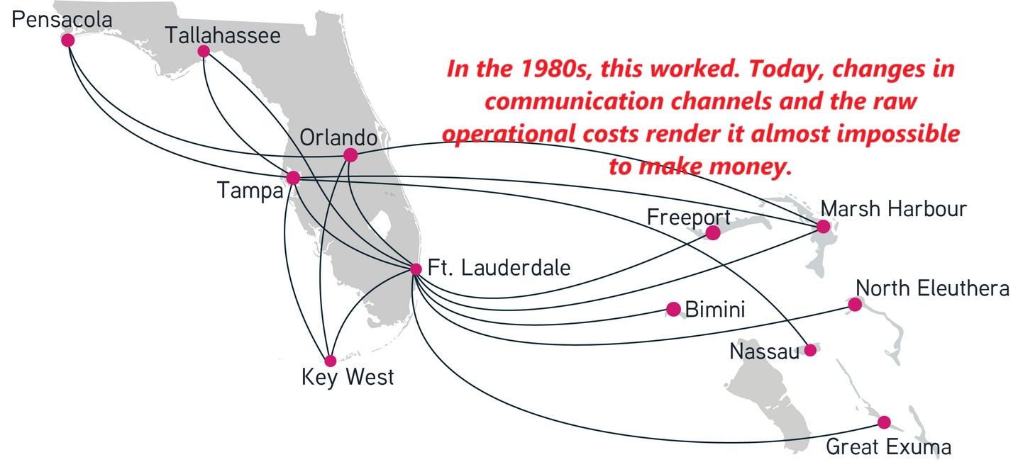 Routes were initiated and then dropped like flies right from the start. Load factors were akin to transporting sailboat fuel. The only thing that appeared positive was that Global X, the actual operator, was apparently a lot more reliable than the jive numbers the Red Way folks forecasted. In fact, the state report indicated that just one flight – the first one out of LNK – was profitable.